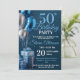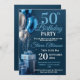 Un ballon bleu élégant et un design cadeau pour une célébration de 50e anniversaire. Comprend des ballons bleus et argentés avec du texte bleu et blanc.