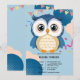 Cette jolie invitation au baby shower de chouette de bébé présente un thème boisé bleu, des confettis colorés et des bouquets festifs. Parfait pour les baby showers garçons ou sans sexe avec un thème adorable de hibou. Si vous avez besoin d'un autre produit correspondant ou de la personnalisation, veuillez envoyer un message via Zazzle.