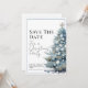 Annoncez votre réunion de vacances avec style avec cette carte Save the Date avec une belle aquarelle bleu sapin de Noël ornée de billes d'argent et d'accents d'or. Cet élégant design est parfait pour les fêtes festives et les fêtes de saison. Personnalisez avec vos détails d'événement et assurez-vous que les invités marquent leurs calendriers.
