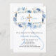 Un élégant arrière - plan blanc, décoré de fleurs bleues aquarellées, d'un arc bleu et d'une croix dorée. Personnalisez et ajoutez un nom et des détails !