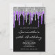 Une jolie invitation pour sa fabuleuse fête du 40e anniversaire. La parties scintillant violet argent brillant et bleu violet faux gouttes créées avec des graphismes arts numériques contre le noir solide. Customisez l'élégant style de police, la taille, l'espacement et la couleur selon vos besoins. Invitations de fête d'anniversaire personnalisables. Glam et invitations chic.