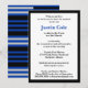 Bar Mitzvah invitation avec rayures bleues et argentées sur un arrière - plan noir. L'information d'invitation est sur un arrière - plan blanc. Personnalisez avec vos informations de bar mitzvah en utilisant les modèles faciles. La couleur de police, le style de police et la taille de police sont personnalisables. Classique et chic, l'invitation parfaite de bar mitzvah.