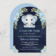 Éblouissez vos invités avec cet élégant invitation de baby shower avec un mignon éléphant aux belles fleurs sur un arrière - plan bleu marine. Ajoutez simplement les détails de votre événement sur ce modèle facile à utiliser pour en faire une invitation unique.