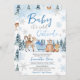 Invitation Bleu Baby shower forestier d'hiver