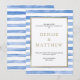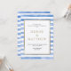 Invitation Bleu barbeau aquarelle rayure et lettrage doré