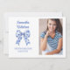 Bleu et blanc faire-part de graduation / invitation de fête personnalisée avec une photo du diplômé. Parfait pour les diplômés du secondaire ou de l'université. Contactez-moi pour obtenir de l'aide sur vos personnalisations ou pour demander une correspondance ou une coordination supplémentaire des produits Zazzle pour célébrer votre diplômé.