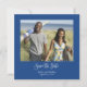 Invitation Bleu blanc minimal photo QR Code Enregistrer la da