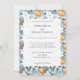 Invitation Bleu Blanc Sicilien Été Floral Oranges Mariage