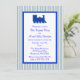 Cette invitation présente une jolie peinture d'un train. Des rayures bleues et blanches donnent à l'invitation une allure moderne et tendance. Il est facile de remplir vos informations et, voilà, vous avez une invitation de fête moderne et design qui est à votre goût.Il y a des produits correspondants — y compris des timbres-poste et des cartes de voeux — dans cette boutique, Marian Cates Designs à www.zazzle.com/mariancatesdesigns*/