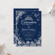 Invitation à la célébration de la Quinceanera en argent bleu marine. Caractéristiques police de script, papillons, roses d'argent et tiara. Parfait pour une élégante célébration de glamour de style princesse. Personnalisez avec vos propres détails. Invitations Zazzle imprimées ou téléchargement instantané modèle imprimable numérique.