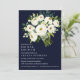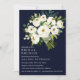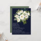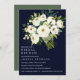 Nos belles invitations à Brunch nuptial florales débordent d'élégantes couleurs d'aquarelle blanc bouquet chic tons blanc et vert sur un élégant arrière - plan bleu dramatique. Le design comporte un bouquet de fleurs en fleurs dans le coin supérieur droit,. Ajoutez vos détails en lettres gris et vert foncé. Reverse de la carte est dans une élégante ombre brossée vert foncé. Pour obtenir du soutien ou une demande personnalisée, veuillez nous contacter par l'intermédiaire du magasin ou écrire à citronelladesign@gmail.com Cet article fait partie de la collection White Bloom