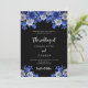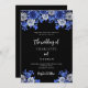 Un arrière - plan noir, décoré de fleurs bleues et blanches. Personnalisez et ajoutez vos noms et détails. Retour : arrière - plan noir.