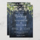 Invitation Bleu Bois Chaîne Lumières Verdure QR Code Mariage