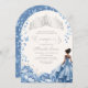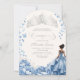 Invitation Bleu clair Papillons Tiara Fleurs Quinceanera