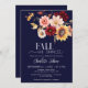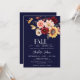 Bleu Marine Chute En Amour Dahlia Daisy Invitation À La Douche Nuptiale. Invitation à la douche nuptiale rustique et élégante avec aquarelle peinte à la main rouge bordeaux, marron, beige et rose vif fleurs et feuilles de bouquet et bleu marine couleur dans l'arrière - plan. Contactez-nous par conversation si vous avez besoin de personnalisation ou de correspondances.