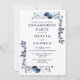 Cette élégante invitation de fiançailles florales bleu marine et blanc peut être personnalisée avec vos informations dans la typographie moderne. Conçu par Thisisnotme©