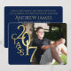 Midnight bleu et or Classe de 2017 invitation de graduation avec le nom de l'école et la photo de graduation couleur complète, personnaliser avec votre propre photo, texte et style de police.