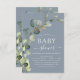 Dusty Blue Eucalyptus Verdure Aquarelle botanique Succulente Printemps Genre Neutre Baby Boy ou Baby Girl Baby Shower Invitations sur l'arrière - plan blanc - comprend belle et élégante typographie de script avec feuilles botaniques modernes et verdure pour la célébration spéciale Mère à être.