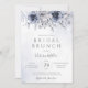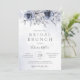 Élégante invitation à brunch à la nuptiale florale moderne avec des fleurs d'aquarelle bleu poussiéreux avec calligraphie manuscrite.