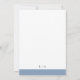 Faire-part de mariage moderne avec une bande bleue poussiéreuse audacieuse en haut et en bas. Vos noms sont dans une police serif classique et vos détails sont dans une combinaison d'une police serif moderne et d'un script élégant. Le dos a une bande le long du fond avec votre monogramme. Cette conception simple et minimale avec un libellé traditionnel est idéale pour un mariage formel.