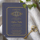 Un design élégant de bannière déroulante et de cadre festonné de ton doré et d'invitation à une fête de remise de diplôme en bleu qui peut être personnalisé pour les remises de diplômes d'école secondaire, d'université ou d'école professionnelle. Conception de Holiday Hearts Designs (tous droits réservés).