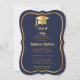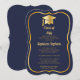 Invitation Bleu élégant | Gold Casquette Graduation Party