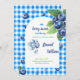 C'est le meilleur choix pour votre événement spécial ! Sweet berry est en route :) Célébrez l'arrivée la plus douce avec cette charmante invitation baby shower "Berry Sweet". Doté d'un arrière - plan bleu en vichy classique, de bleuets d'aquarelle, de feuilles verts luxuriants et de ballons festifs, ce design allie à merveille charme rustique et élégance ludique. Le script moderne et la palette de couleurs douces en font un endroit idéal pour le baby shower d’un garçon ou toute célébration sur le thème des baies. Personnalisez avec vos détails d'événement pour créer une invitation chaleureuse et mémorable que vos invités aimeront. Idéal pour les rassemblements d'été, les fêtes en plein air ou les douches d'inspiration ferme.