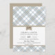 Invitation Bleu et bronzage à plaid simple avec Mariage Monog
