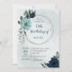 Invitation Bleu et fleurs marine Dusty anniversaire géométriq