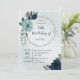 Invitation unique fête d'anniversaire avec des fleurs romantiques bleu poussiéreux et bleu marine et cadre botanique feuille vert géométrique. POUR PLUS DE PRODUITS CORRESPONDANTS cliquez sur la collection ci-dessus ou contactez-moi.