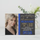 Blue & Bronze Gold Modern Chalkboard Graduation Photo Invitation Imprimée (comprend des enveloppes) ou téléchargement numérique Collection de classe répétitive Année La combinaison parfaite de classique et élégant. Avec le style de maillot scolaire et les polices de script qui ne sortiront jamais du style!
