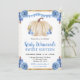 Beau bleu, blanc et or Aquarelle citrouille chute design avec fleurs bleues et éléments or
