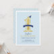 Célébrez votre journée spéciale avec cette invitation moderne à la fête du 1er anniversaire. Ce design présente une typographie de parties scintillant dorée "1" avec une bannière bleue et un joli casquette de fête. Cet invitation simple et mignon sera parfait pour une fête d'anniversaire de garçon moderne à thème bleu et or.
