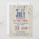 Invitation Bleu et rouge Étoiles et rayures rustiques | 4 JUI