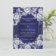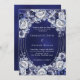 Pour un mariage d'hiver. Un bleu marine, un arrière - plan de couleur irrégulière décoré de fleurs bleues et blanches. Un cadre ovale en faux argent. Personnalisez et ajoutez vos noms et détails.