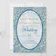 Le texte est écrit dans un ovale transparent blanc, avec des lettres bleues, sauf les noms, qui sont dorés. Le mot Mariage est écrit dans une écriture calligraphique ; le reste est en majuscules.