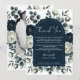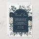 Invitation Bleu foncé et blanc Moderne Floral Végétal Mariage