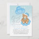 Invitation Bleu hiver Sleepy Bear Balloons Baby shower garçon