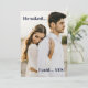 Ce produit est un modèle photo unique. Téléchargez facilement votre photo de couple romantique à cette invitation de fiançailles simple et élégante. Modifiez le verso de la carte avec vos noms et les détails de la partie de fiançailles. Belle police neutre de couleur beige boho et sur la carte inverse. Cette photo n'est utilisée qu'à des fins de démonstration et doit être remplacée avant l'achat. Blue Il A Demandé J'Ai Dit Oui Engagement Party Invitation.