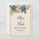 Botanique marine bleu, ivoire, or jardin fleuri Enregistrer la date Faire-part de mariage. Une simple invitation botanique aux fleurs d'automne, parfaite pour un jardin ou un mariage extérieur. Tous les dessins sont imprimés.