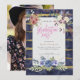 Invitation Bleu Marine/Bande d'Or/Flore/Votre Photo/Diplôme