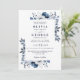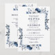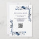 Invitation Bleu marine et blanc Élégant floral QR Code Mariag
