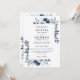 Cette élégante invitation de mariage bleu marine et blanc floral peut être personnalisée avec vos informations en typographie moderne avec le code QR de votre site web de mariage au verso. Conçu par Thisisnotme©