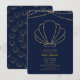 Invitation Bleu marine et coquillage doré Sirène Baby Shower