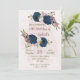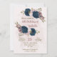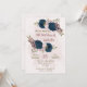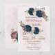 Invitation bleu marine rose fleurs botanique anniversaire
