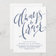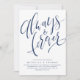 Les invitations de mariage simples et modernes comprennent des lettres manuscrites "toujours et pour toujours" en bleu marine et blanc, customisez-le avec vos détails mariages, élégant et élégant, Voir toutes les pièces correspondantes dans la collection.