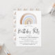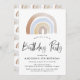 Célébrez la fille ou le garçon d'anniversaire avec nos invitations de fête d'anniversaire arc-en-ciel mignonnes! Les invitations colorées à la fête d'anniversaire comportent un arc-en-ciel aquarelle en haut dans les tons brun, bleu et or. "Birthday Party" est présenté dans un script de calligraphie moderne noir avec les détails de votre fête affichés ci-dessous. Les invitations se retournent pour présenter un motif arc-en-ciel assorti.