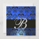 Invitation BLEU NOIR DAMAS MONOGRAMME , Or Blanc Brillante