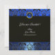 INVITATION BLEU NOIR DAMAS MONOGRAMME SAPHIR MÉTALLISÉ OR