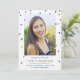 Navy, blue & gold confetti entoure la photo de votre diplômé dans ces annonces chic et simples de graduation confetti. Détails de la fête à l'arrière donc il sert aussi d'invitation ! (Facultatif : vous pouvez supprimer les détails de l'invitation sur le dos à l'aide de l'outil "personnaliser".)